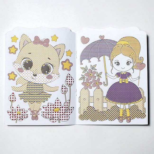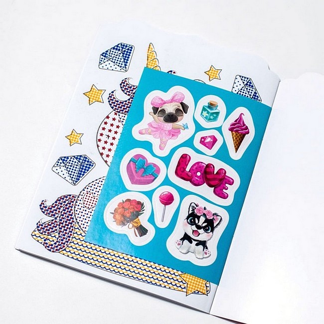 Готові зображення дитина може декорувати яскравими фігурними наліпками, їх у книжечці аж 20 шт.