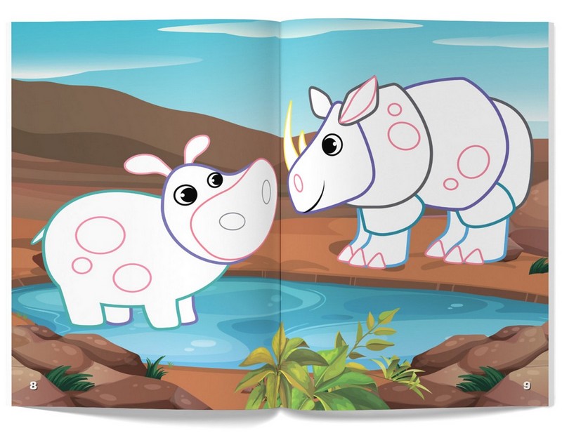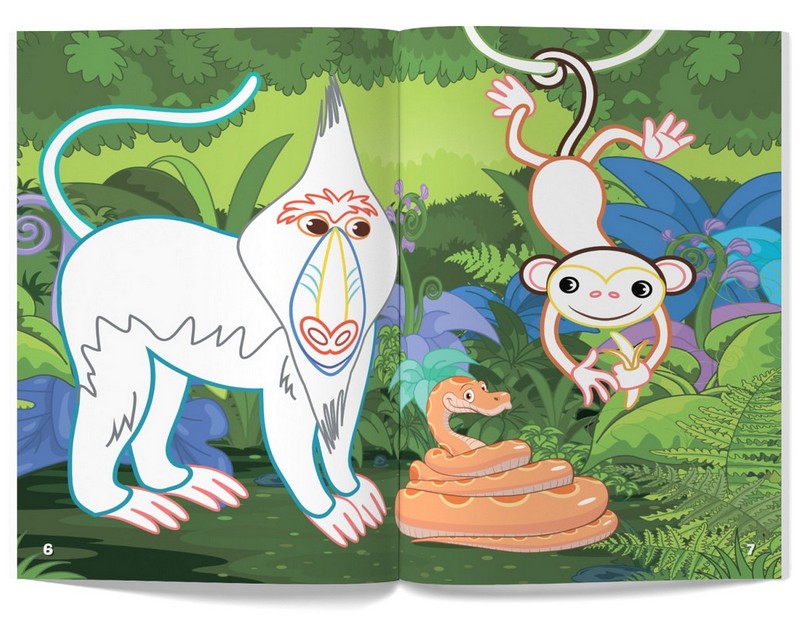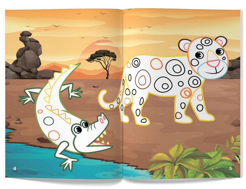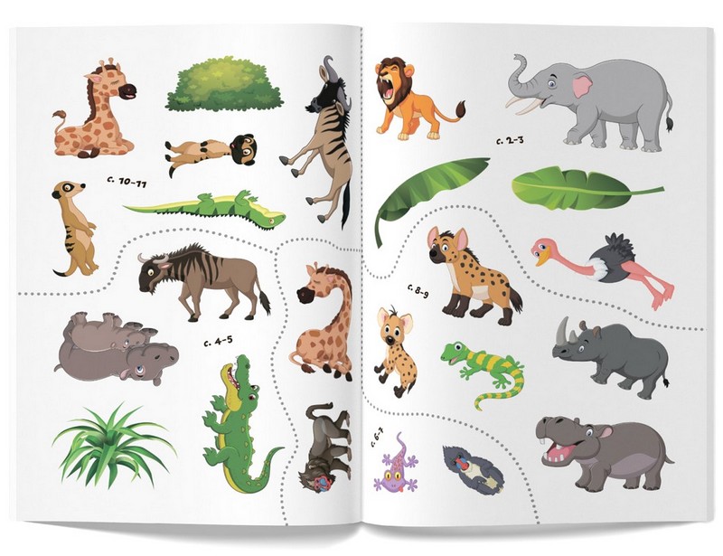 Перші розмальовки з кольоровим контуром і наліпками. Африка