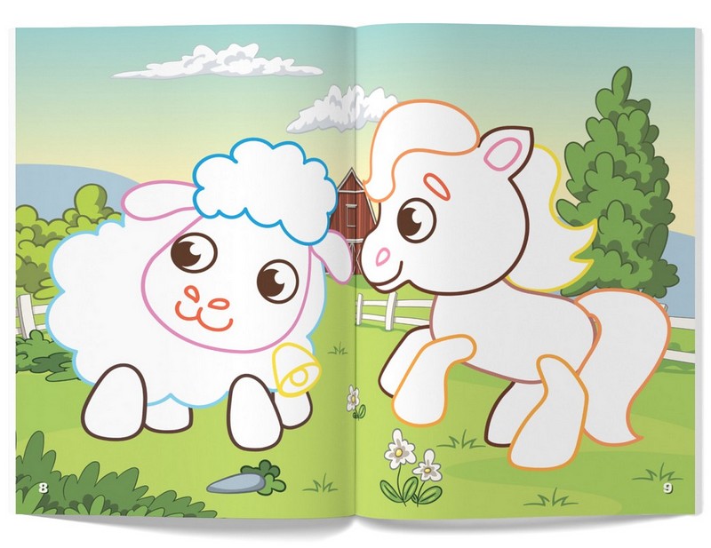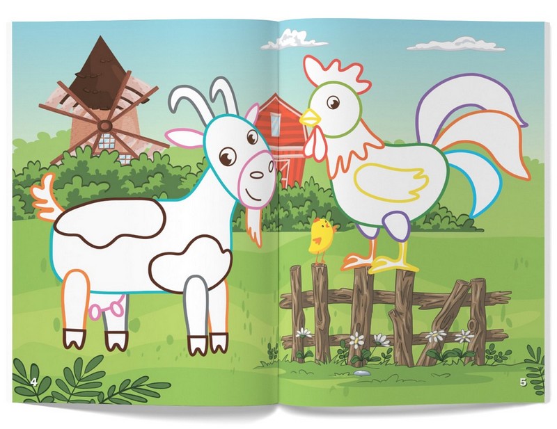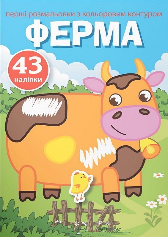 Перші розмальовки з кольоровим контуром і наліпками. Ферма