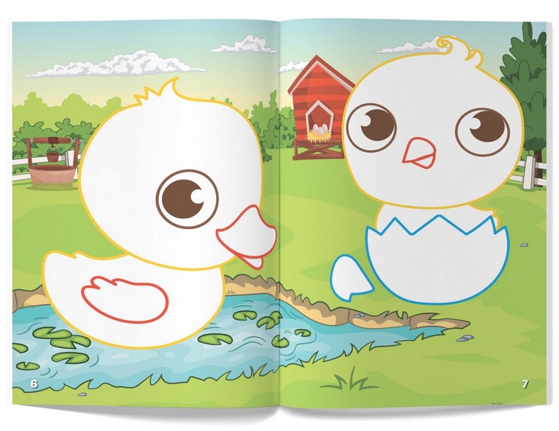 З нашою книжкою будь-який непосидько забуде про витівки й пустощі, адже на нього чекає захопливе заняття — розфарбовування картинок! Кольорові контури підкажуть юному художнику, яку барву потрібно вибрати, а яскраві наліпки допоможуть зробити малюнок ще кращим. Створюючи власні маленькі шедеври, дитина водночас дізнається, хто живе на фермі.