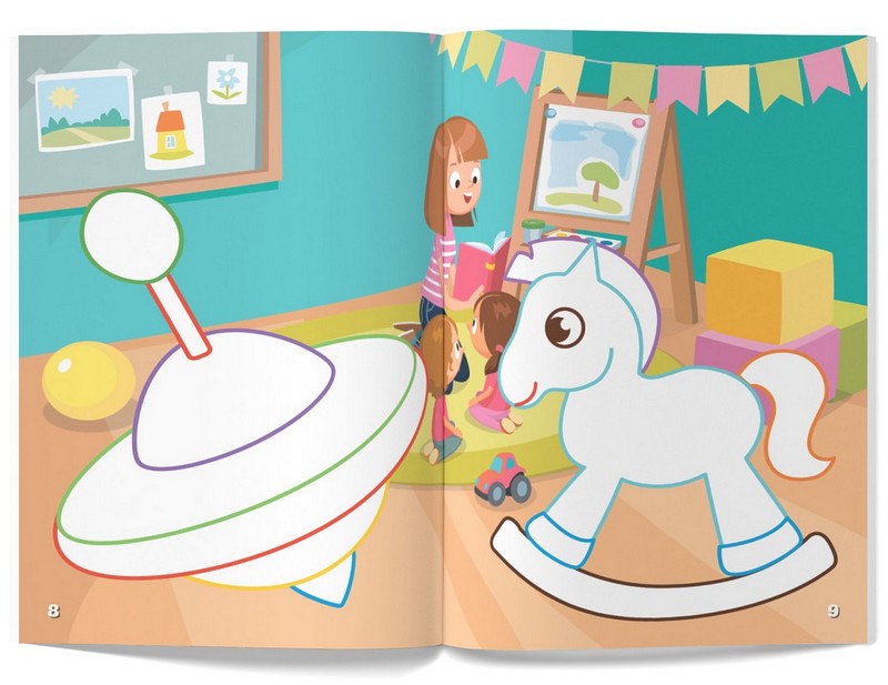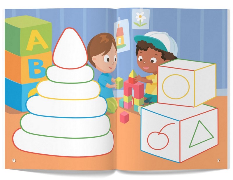 З нашою книжкою будь-який непосидько забуде про витівки й пустощі, адже на нього чекає захопливе заняття — розфарбовування картинок! Кольорові контури підкажуть юному художнику, яку барву потрібно вибрати, а яскраві наліпки допоможуть зробити малюнок ще кращим. Створюючи власні маленькі шедеври, дитина буде розвивати уяву та уважність.