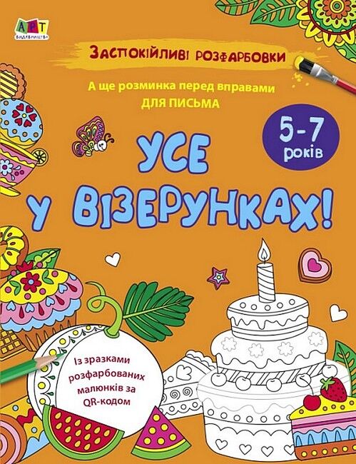 Розфарбовки «Все у візерунках» містять кумедні візерунчасті малюнки та на кожній сторінці QR-код зі зразком у кольорі! З чого почнемо? Рибки, мушлі, метелики, смаколики, кактуси, котики під ковдрою, навіть транспорт. І це ще не весь перелік. Різноманітні цікаві і незвичайні деталі дозволяють розвинути почуття смаку, навчитися поєднувати різні відтінки, відчувати колір. Це відмінний спосіб розвинути фантазію дітей, відволіктися та заспокоїтися.