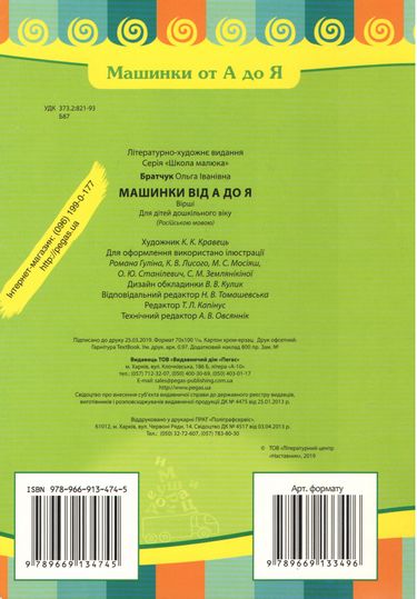 Як здорово розглядати різнобарвні автівки, вчити назви марок, а заразом і абетку, адже всі марки машин подані в книжечці за абеткою. А ще тут веселі двовірші про автомобілі, які малята легко запам’ятають.