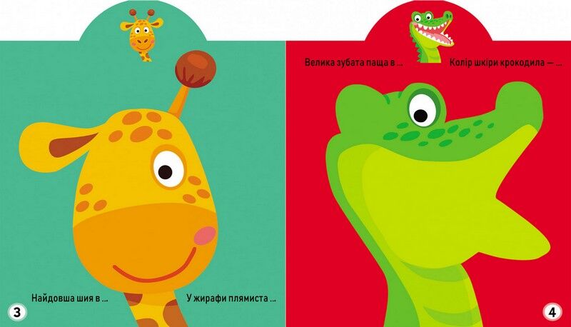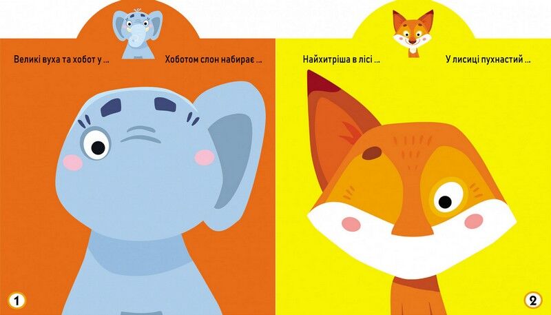Чиї це кумедні вушка, ноєики, оченята й ріжки? Відгадай-но, кого зображено на малюнку! Допоможи звірятам повернути те, що вони втратили. Використовуй для цього наліпки. А якщо заплутаєшся, подивися на зразок угорі сторінки!