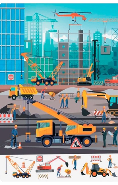 Ця захоплива книга-віммельбух — справжній візуальний вибух для допитливих малюків! На кожній сторінці — безліч розумних машин: будівельна техніка, рятувальні автомобілі, сільськогосподарські трактори, дрони, роботи та навіть космічні апарати. І все це — серед яскравих, деталізованих ілюстрацій, які дитина захоче розглядати знову і знову.