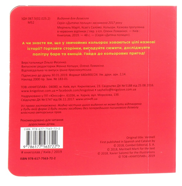 «Кольори. Червоний» книжкова новинка для бібліотеки найвигадливіших маленьких читачів. Авторка Мерічель Марті та ілюстратор Ксав’є Саломо розповіли справжні фантастичні історії за допомогою лише одного кольору та уяви вашої дитини.