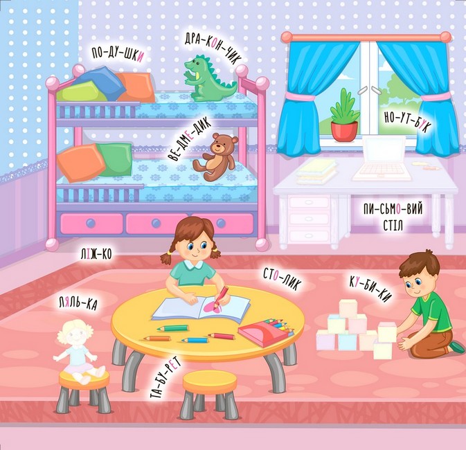 Книга познайомить малюка з меблями, посудом, іграшками та іншими хатніми речами. Видання призначене для спільної роботи дорослих з дітьми дошкільного віку.