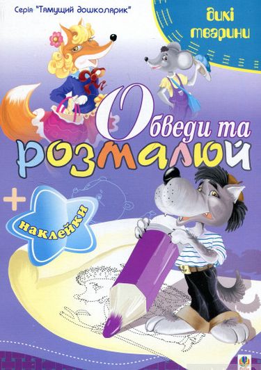 Обведи та розмалюй + наклейки. Тварини дикі.