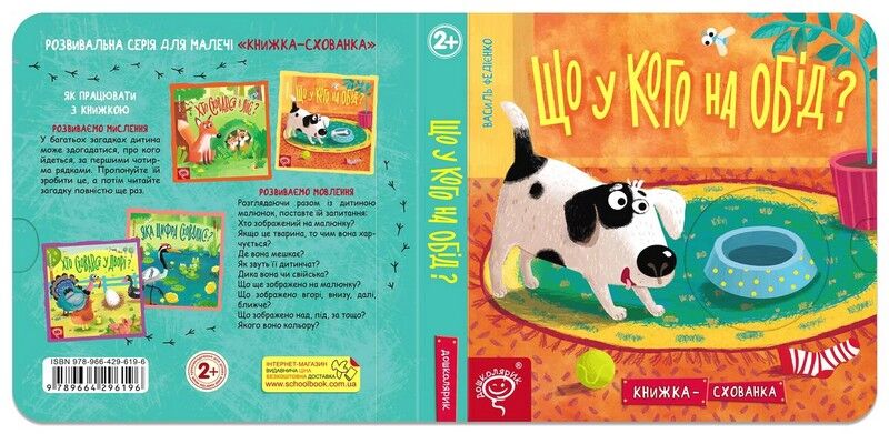 До серії «Книжка-схованка» входять книжки, що містять цікаві розвивальні загадки. Відгадка «ховається» на висувному малюнку. Розглядаючи малюнки, ставте дитині запитання про зображене, про його колір та розмір, характерні особливості зображеного. Книжки серії розвиватимуть у дитини образне мислення, логіку, увагу та усне мовлення та можуть бути використані як посібники з ознайомлення з навколишній світом.