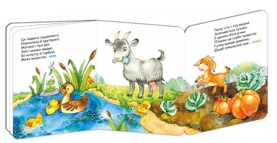 Книжка про свійських тварин сприятиме всебічному розвитку вашого малюка. У ній містяться загадки, які можна намагатися відгадувати разом із дитиною за першими чотирма чи навіть двома рядками. Слід звернути увагу на малюнок-підказку, а потім, розгорнувши сторінку, запропонувати малюку іншу загадку.