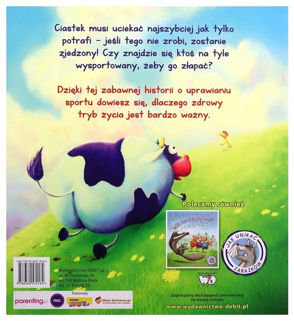 Dlaczego ogladanie telewizji, popijanie herbatki i jedzenie slodyczy moze sie zle skonczyc, pokazuje historia poscigu za piernikowym chlopcem o smakowitym imieniu Ciastek. Okazuje sie, ze unikajacy aktywnosci fizycznej i delektujacy sie jedzeniem bohaterowie nie sa w stanie dogonic Ciastka. Udaje sie to dopiero lisowi, ktory bycie w dobrej formie zawdziecza beztroskim zabawom ruchowym na lace i zdrowemu odzywianiu. Czy pomoze okraglutkim staruszkom, ogromnej krowie i ociezalemu koniowi zmienic zle nawyki?