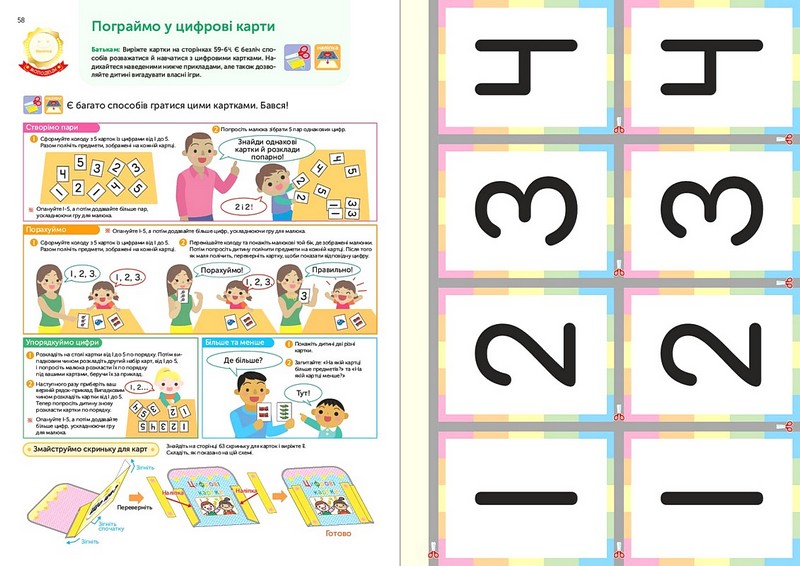 Зіставляючи пораховані предмети та шукаючи відповідності, ваша дитина знайомитиметься з числами від одного до десяти. Втім, основна увага надаватиметься розпізнаванню цифр від одного до п’яти.