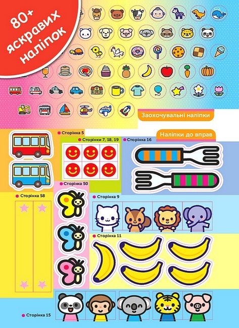 80+ яскравих наліпок використовуються в завданнях в ролі винагороди за виконану працю!