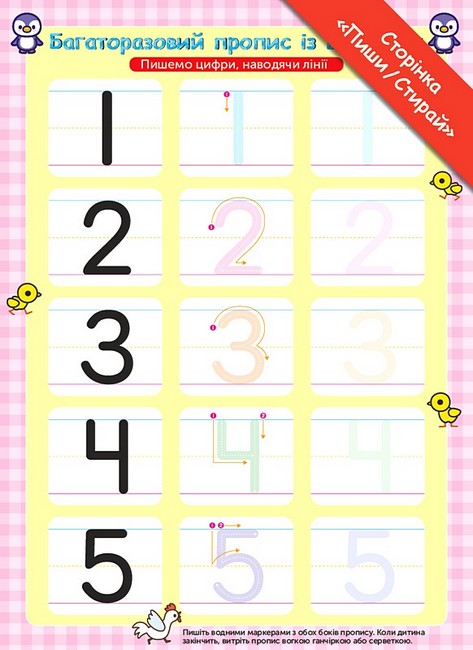 Захопливі вправи в ігровій формі готують до перших кроків у математиці, розвивають дрібну моторику, вчать розпізнавати і писати цифри від 1 до 5 та знайомлять малюка з числами першого десятка.
