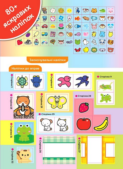 80+ яскравих наліпок використовуються в завданнях в ролі винагороди за виконану працю!