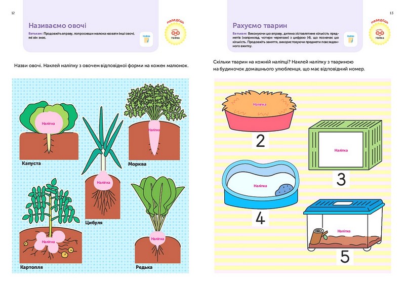 На цьому етапі надзвичайно важливо плекати любов до навчання, тому сторінки цієї книжки не обов’язково проходити у якійсь визначеній послідовності. Якщо маля виявляє інтерес до певної вправи, займайтеся, доки стане цікавості. Якщо ні — зробіть перерву чи перегорніть на іншу, цікавішу сторінку.