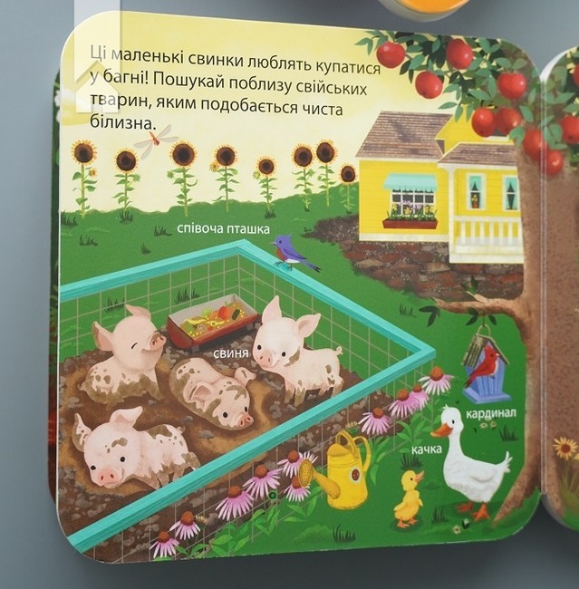 Малюкам сподобається досліджувати кожну сторінку на тему ферми, наповнену цікавими фактами, новими словами та сюрпризами під віконцями, достатньо міцними навіть для найзайнятішого малюка!