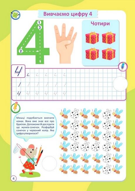 Лічба з мишками (+наліпки). Посібник для дітей від 4 років