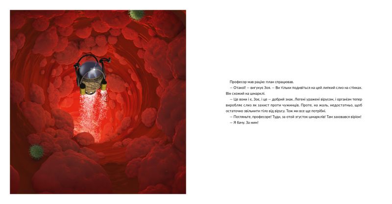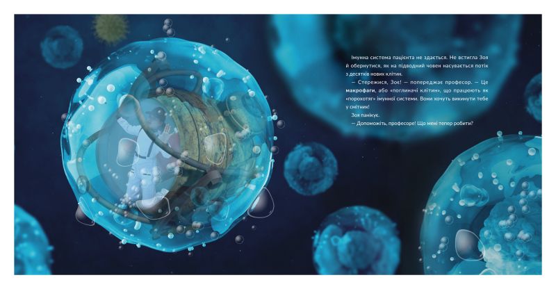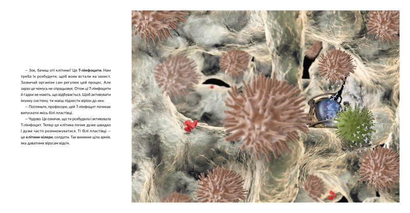 Із цієї книжки діти дізнаються чимало цікавого про імунну систему та її захисні механізми, набуті і вроджені. Захоплива подорож організмом сформує у читачів комплексне розуміння роботи імунітету, розкаже про віруси та засоби боротьби із ними.