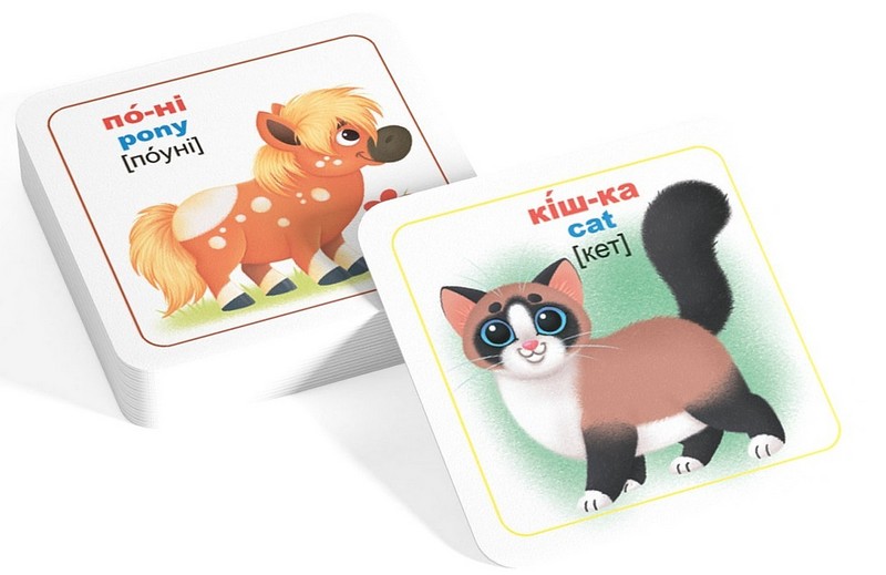 Комплект містить 30 карток. Знайомся із свійськими тваринами, вчи англійську мову, роздивляйся чудові малюнки, навчайся граючись! Перегляд таких карток дозволяє дитині швидко засвоїти назви тварин, запам’ятати як вони пишуться, розвиває у нього інтелект і формує фотографічну пам’ять.