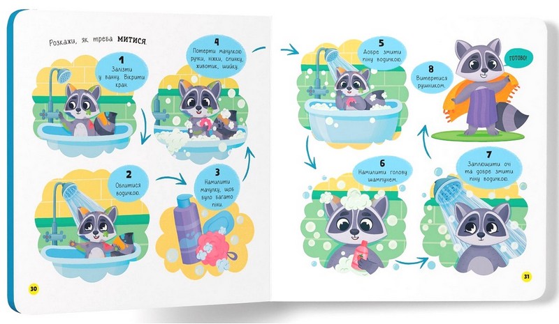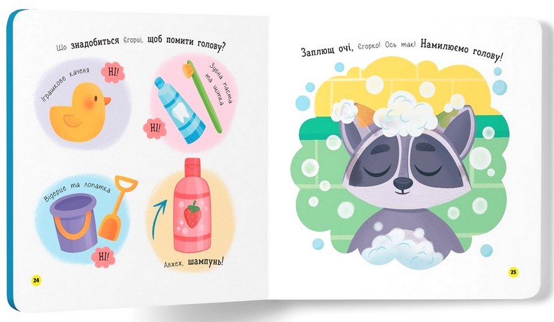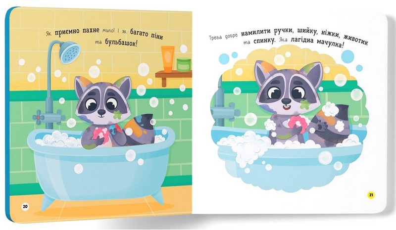 Ця інтерактивна книжка підкаже батькам, як в ігровій формі дитині полюбити водичку, мило та мачулку й митися без вередувань. Разом з милим героєм ваш малюк засвоюватиме важливі навички: запам’ятає правильну послідовність дій — облитися водичкою, потертися мачулкою з милом, змити піну, заплющити очі та помити голову шампунем, витертися рушником. А якщо раптом не вийде з першого разу — не варто засмучуватися, треба зробити цей процес щоденним ритуалом.