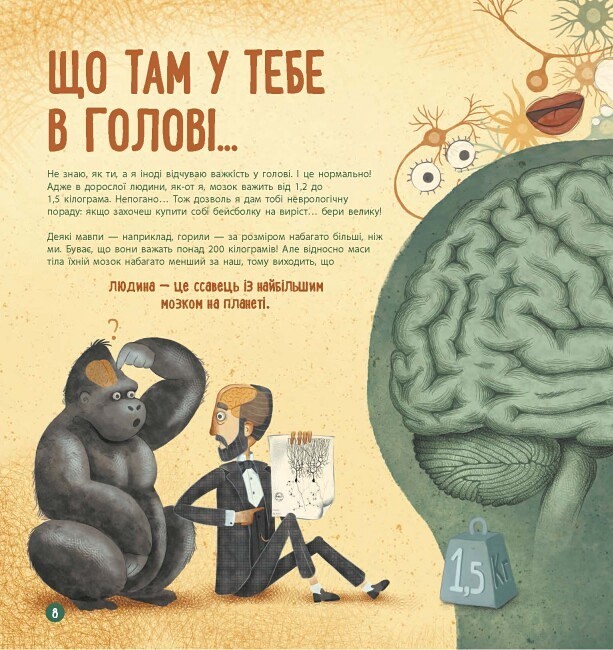 Ця книжка містить про мозок усе, що цікавить юних шукачок і шукачів відповідей! Як він утворюється, яку будову має, як пов'язані клітини, що допомагають йому функціювати... Та й взагалі — як працює людський (і не тільки!) мозок. Розповідає все це не абихто, а доктор Сантьяґо Рамон-і-Кахаль, нобелівський лауреат. Він проводить дитину сторінками книжки, знайомить з іншими вченими та їхніми відкриттями і робить нейробіологію доступною навіть для школярів і школярок!