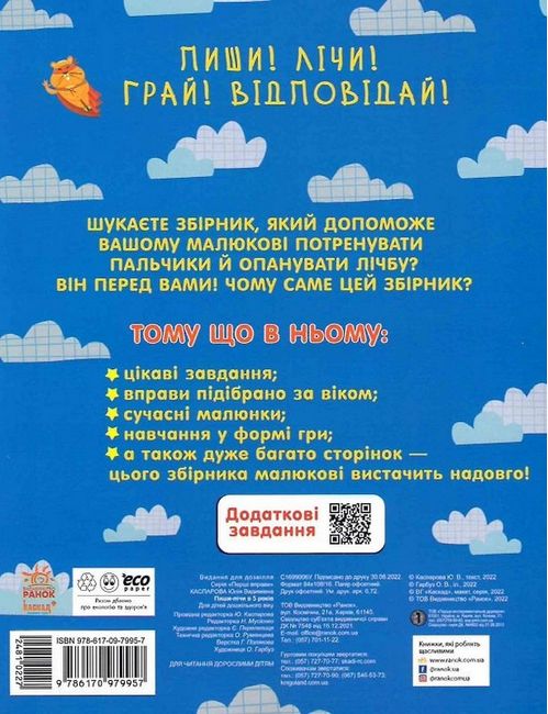 Шукаєте збірник, який допоможе вашому малюкові потренувати пальчики й опанувати лічбу? Він перед вами! Чому саме цей збірник? Тому що в ньому: - цікаві завдання; - вправи підібрано за віком; - сучасні малюнки; - навчання у формі гри; - а також дуже багато сторінок — цього збірника малюкові вистачить надовго!