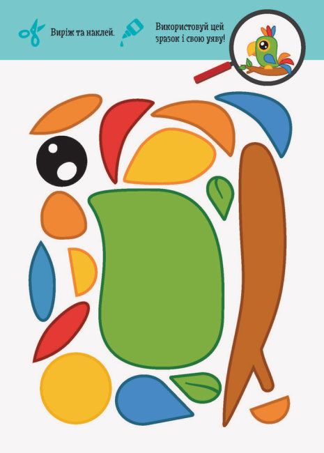 Що знадобиться для аплікації: цей альбом, аркуш паперу або картону, ножиці, клей.