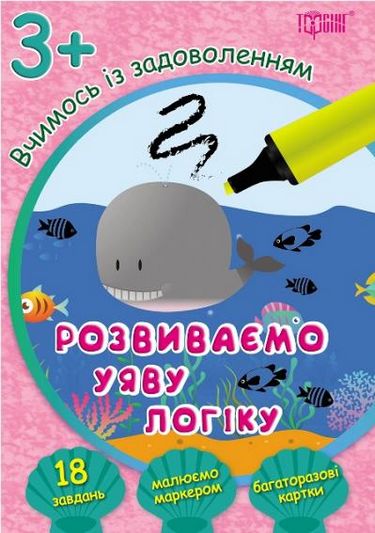 Вчимося із задоволенням. Розвиваємо уяву і логіку 3+ Розвиток уяви, багата фантазія впливають на формування всієї пізнавальної сфери, обумовлюють розумову діяльність людини. Головним для дитини молодшого дошкільного віку є наочно-образне мислення. Малюк навчається мислити за допомогою образів, уявлення предметів. Якщо у дитини добре розвинута логіка, у подальшому їй буде набагато легше розвязувати задачі, запамятовувати інформацію і взагалі досягти успіху у різних життєвих сферах. Данний комплект цікавих завдань із серії вчимося із задоволенням підготовлений спеціально для дітей від 3 років. Завдання розроблені відповідно до віку вашого малюка і згідно з рекомендаціями досвідчених методистів. Майте на увазі що набір розвивальних карток призначений не тільки вашій дитині, а й вам теж. Річ у тому, що ви самі повинні спочатку уважно роздивитися всі вправи і тільки після цього розяснити малечі, що треба робити