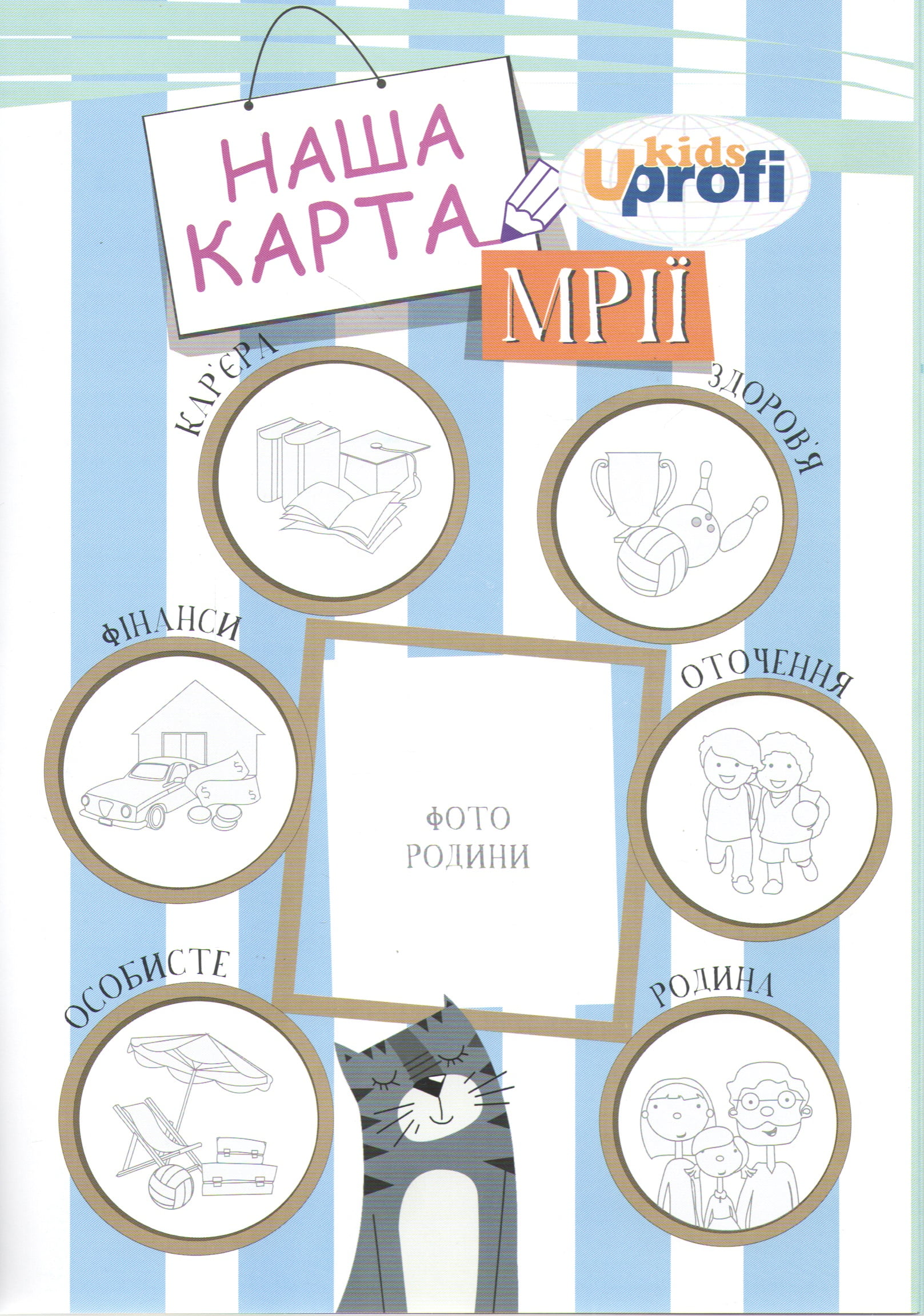 На першій сторінці необхідно скласти Вашу карту мрії, вклеїти фото сім'ї та заповнити кожну сферу життя, попередньо обговоривши ваші плани на сімейному зборах. Прочитавши дитині повчальну історію, Ви приступаєте до вибору завдань для дитини, які вона має виконати протягом місяця. Щоб дитині було цікавіше додержуватися завдань, вони оформлені барвистим