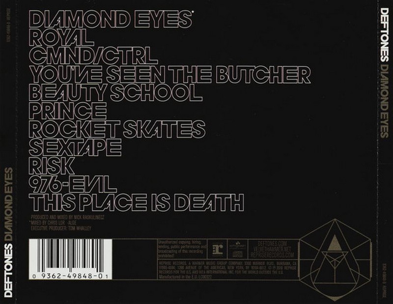 Diamond Eyes is the sixth studio album by American alternative metal band Deftones, released on May 4, 2010, by Reprise Records. It was the first album to feature bassist Sergio Vega, who replaced original bassist Chi Cheng. An album tentatively titled Eros was originally intended to be the band's sixth full-length release following Saturday Night Wrist (2006), but was not finished due to Cheng entering a coma after a serious car accident that occurred in November 2008, eventually resulting in his death in 2013. The band continued on with Vega as his replacement, and the release of Eros was put on hold in favor of Diamond Eyes in June 2009.