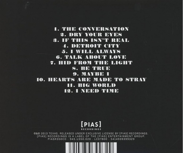 The Conversation is the eighth album from Scottish rock band Texas. It was released on 20 May 2013. Tracks are written mainly by Sharleen Spiteri and Johnny McElhone, with Richard Hawley and Bernard Butler as collaborators. The Conversation is the group's first studio album of new material since Red Book in 2005. The title track "The Conversation" was released as the first single from the album in April 2013, followed by up-beat Pop Rock "Detroit City", both of which received a decent amount of UK airplay, including on BBC Radio 2's playlist.