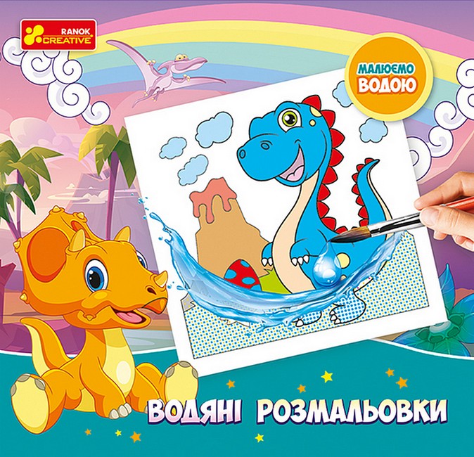 Продовження серії водяних розмальовок! Книжечка-розмальовка виконана у дизайні, який подобається дітям. З веселими різнокольоровими динозавриками для малюків від 2-х років! Для розфарбовування не знадобляться олівці та фарби. 6 картинок, кожна на окремому аркуші. Тому вони не склеюються і не розмазуються.