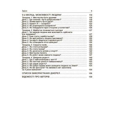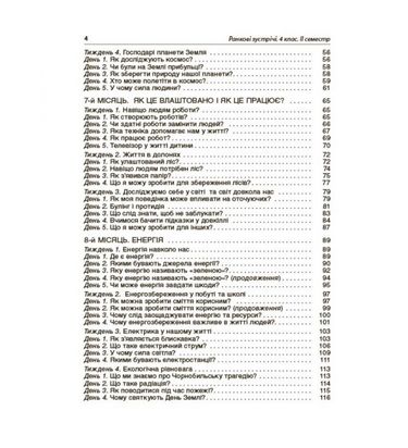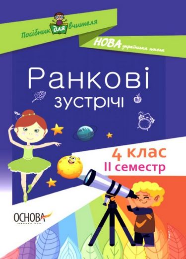 Посібник містить розробки ранкових зустрічей у 4-му класі, складені відповідно до Концепції Нової української школи, вимог нового Державного стандарту початкової загальної освіти та Типової освітньої програми для закладів загальної середньої освіти, розробленої під керівництвом Р. Б. Шияна (3-4 класи). Матеріал систематизовано за темами місяців (ІІ семестр): «Світ невидимий», «Світ невідомий», «Як це влаштовано і як це працює?», «Енергія», «Можливості людини».