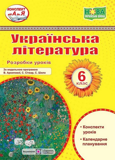 У посібнику подано розгорнуті конспекти уроків з української літератури для 6 класу за модельною навчальною програмою «Українська література. 5–6 класи» для закладів загальної середньої освіти (автори: В. Архипова, С. Січкар, С. Шило), та орієнтовне календарно-тематичне планування.