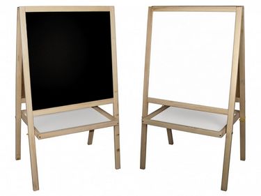 Мольберт дитячий дерев'яний "Великий" (не фарбований). Одна поверхня чорна для малювання крейдою, інша - біла (полімерне покриття) для малювання кольоровими сухостираємими або водними маркерами і магнітна. Під поверхнями поличка для крейди і фломастерів.