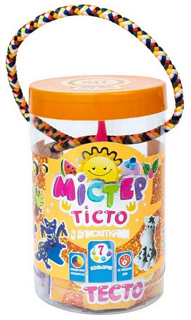 Набір тіста для ліплення "Містер тісто 7 кольорів з блискітками" стане знахідкою для шанувальників фігурок із пластиліну та подібних субстанцій. Він дуже великий - у наборі цілих 7 шматочків різнокольорового тіста. Воно не забруднює руки та є замінником простого пластиліну. І що дуже важливо – маса абсолютно безпечна для малюка.
