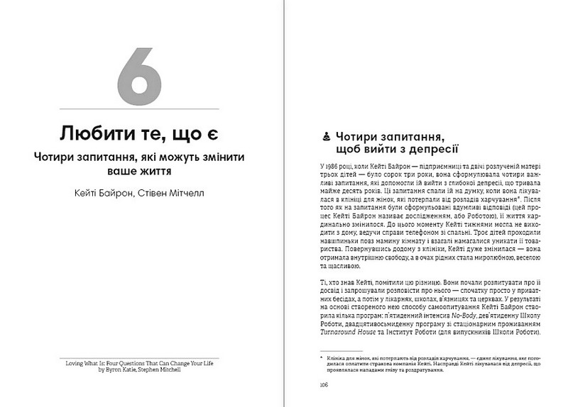 6. «Любити те, що є. Чотири запитання, які можуть змінити ваше життя» Кейті Байрон, Стівена Мітчелла;