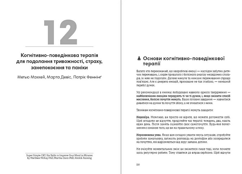 12. «Когнітивно-поведінкова терапія для подолання тривожності, страху, занепокоєння та паніки» Метью Маккея, Марти Девіс та Патріка Феннінґа.