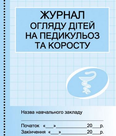Документація для медичних установ і медичних кабінетів навчальних закладів. Журнал оляду дітей на педикульз.
