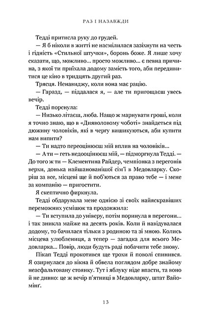 Це роман для тих, хто шукає у книгах емоції й живе відчуття любові. Ідеальний вибір для вечірнього читання, коли хочеться поринути в історію, яка надихає вірити в почуття «раз і назавжди».