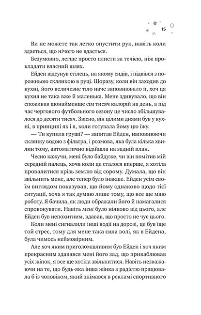Цей роман — як довга пробіжка на витривалість: ритм наростає непомітно, а наприкінці ти розумієш, що дихаєш в унісон із героями. Вона — помічниця, яка втомилася бути тінню чужого успіху. Він — легендарний спортсмен із прозивним «Стіна», який не говорить зайвого, але робить неможливе. Їх поєднує угода без романтики… і шлях, де довіра будується дрібними вчинками, а почуття визрівають повільно, без спойлерів і різких поворотів — лише чесні емоції, погляд у погляд і мовчання, що значить більше, ніж сотні слів.