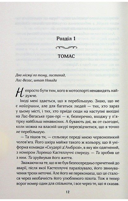 Це сучасний любовний роман із нотками спортивної драми та пригод. Книга стане улюбленою для тих, хто любить пристрасні історії про кохання, поєднані з атмосферою швидкості, адреналіну й драйву. Ідеальний вибір для фанатів романтичних серій із харизматичними героями.