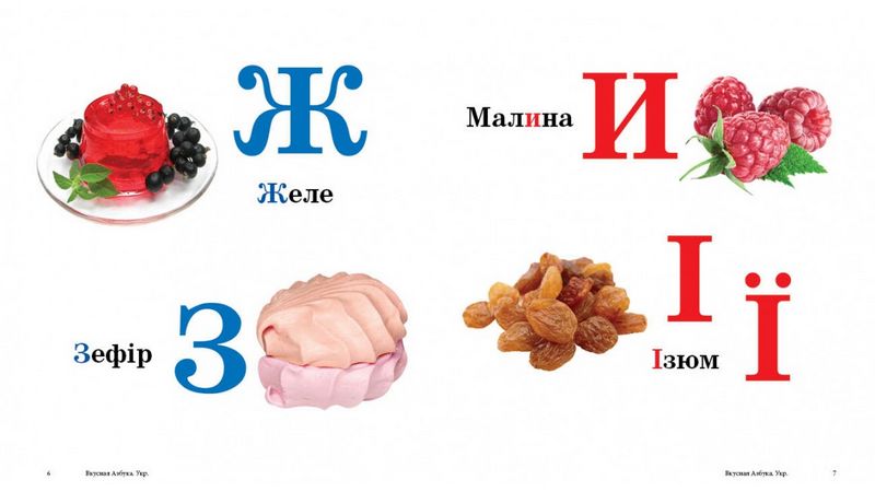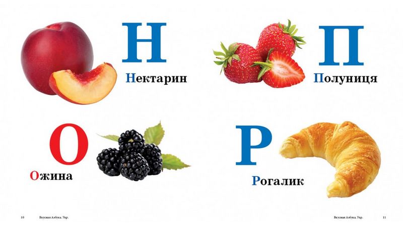 Ця абетка відрізняється від решти подібних видань. Ну від скажіть, чи можна байдуже пройти повз величезну скибку солодкого соковитого кавуна або стиглу білі-червону полуницю?.. Неможливо! Отож-бо й воно!