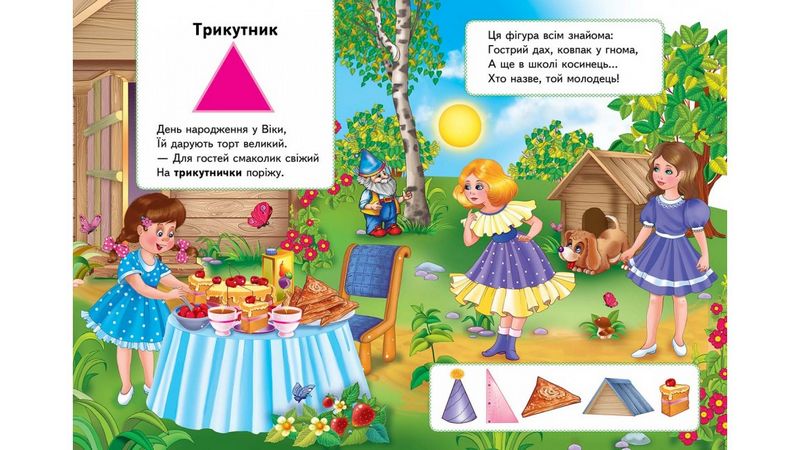 «Вивчаємо фігури» — перший математичний помічник малюка, адже все навколо нього має певну форму, і йому цікаво, як вона називається.