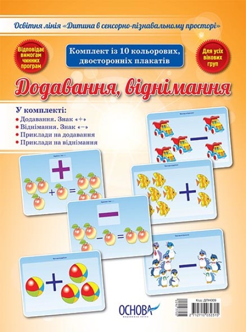 Дитина в сенсорно–пізнавальному просторі. Додавання, віднімання. Комплект плакатів