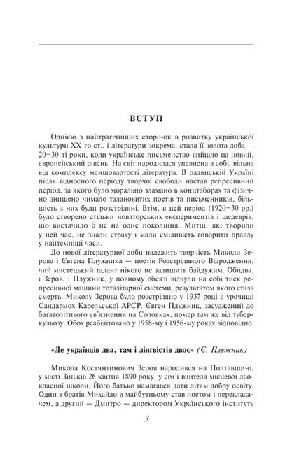 До збірки «Вибране» увійшли твори письменників Миколи Зерова (1890–1937) і Євгена Плужника (1898–1936).