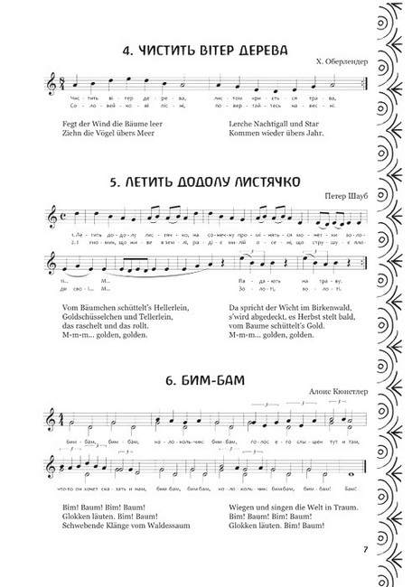 Перша книга «Співів у школі» призначена для вчителів музики загальноосвітніх шкіл, а також вчителів, які працюють з дітьми 1–4 класів. Пісні згруповано за сезонами і ступенем складності відповідно до вікових особливостей дітей, а також враховано музичний досвід вальдорфських шкіл.