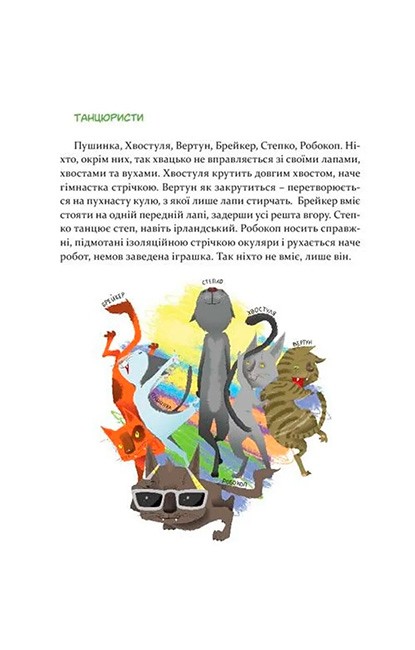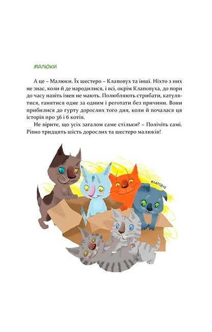 - Яскраві ілюстрації, які оживляють кожного котика на сторінках.