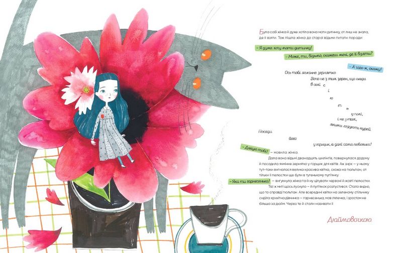 Славетний казкар, улюбленець дітей і дорослих, Ганс Християн Андерсон написав шедевр-надзвичайно зворушливу казку про крихітну дівчинку на ім'я Дюймовочка. Казка виходить у перекладі Галини Кирпи, ім'я якої відтепер є в Honor List 2018 серед найкращих перекладачів дитячої літератури світу. Сучасна українська художниця Грася Олійко створила самобутній казковий дивосвіт.